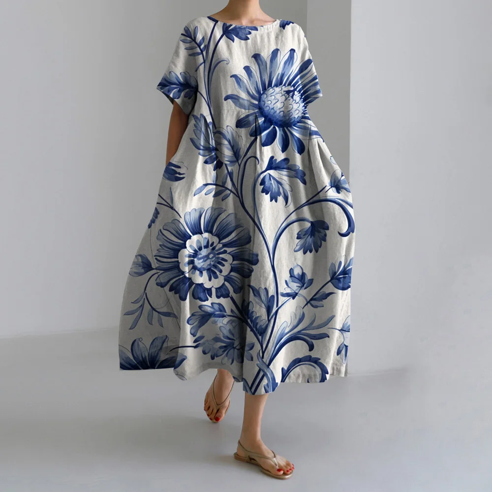 4: Fashion Printed Short Sleeve Long Dress